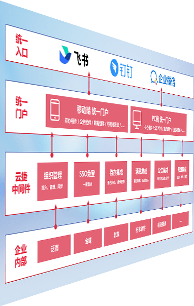对协作平台提供支持服务,,支持企业应用与协作平台对接,,,,包含组织同步、、、消息集成、、待办集成等。。支持目前主流的协作平台:钉钉、、、企微和飞书。。